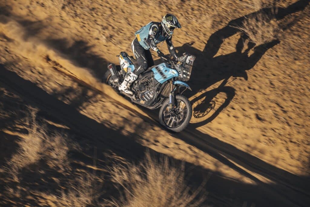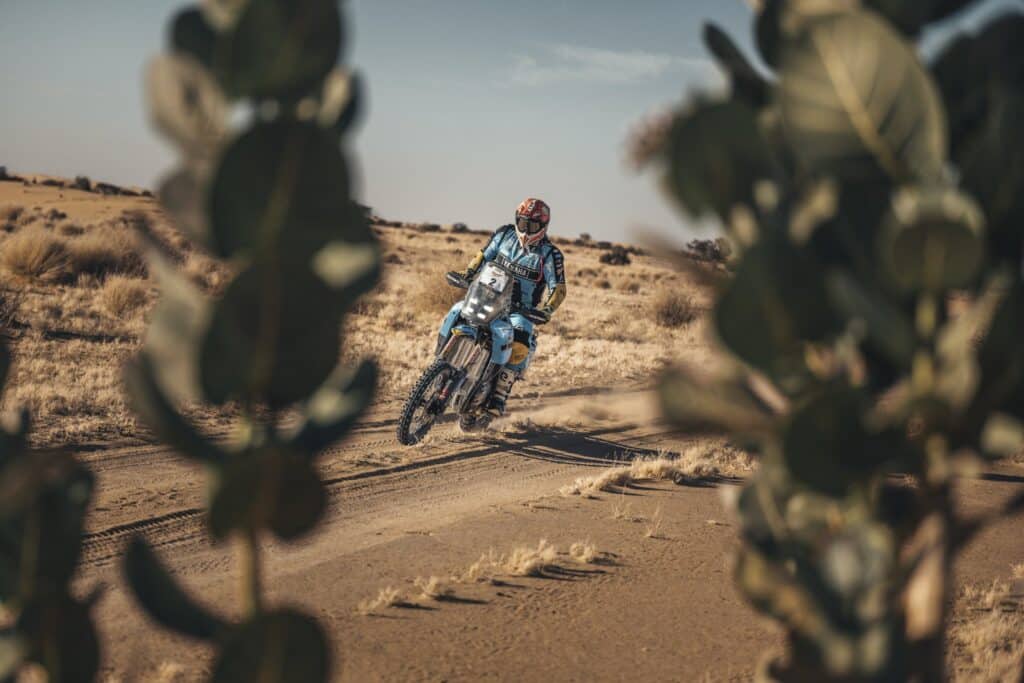„Heute war ein spektakulärer Tag. Ich habe mich auf dem Motorrad richtig wohlgefühlt und konnte die Etappe attackieren. Am Start hatte ich einen kleinen Ausrutscher, der mir wieder einmal vor Augen führte, wie tückisch die Dünen Mauretaniens sein können. Aber ehrlich gesagt, sobald ich im Flow war, konnte ich sie mit der Ténéré fast surfen. Dadurch konnte ich in der Gesamtwertung Zeit gutmachen, und die Führung bei der Rallye zum ersten Mal zu übernehmen, ist einfach unglaublich. Auf dem Papier sieht es so aus, als würde es auf Kevin und mich hinauslaufen, aber im Rallye-Raid ist alles möglich. Außerdem starte ich als Offensivfahrer, was ein großer Nachteil ist, aber ich genieße dieses Abenteuer einfach, und wer auch immer gewinnt, hat es verdient.“