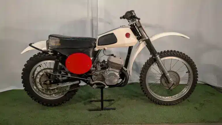 Der luftgekühlte 125-ccm-Einzylinder arbeitet als Piston-Port-Zweitakter – eine Lösung, die in dieser Hubraumklasse für unmittelbare Gasannahme und reduzierten Aufbau steht. Die Gemischschmierung mit vorgemischtem Benzin/Öl ist unkompliziert, die Zündung übernimmt ein Schwunglichtmagnet. Gekoppelt wird das Aggregat an ein manuelles Fünfganggetriebe. Die Leistungsangabe von 17 kW (23 PS) bei 8.400/min ist für einen frühen Siebziger-125er schlüssig und unterstreicht den Charakter als Sportgerät. Ein Instrumententräger fehlt bewusst; Konzentration auf Motorgeräusch, Gangwahl und Traktion ist integraler Bestandteil des Konzepts. Mit einem Trockengewicht von 97,5 kg trifft die Maschine den Punkt zwischen Handlichkeit und Stabilität, wie es im Cross-Einsatz gefragt ist.