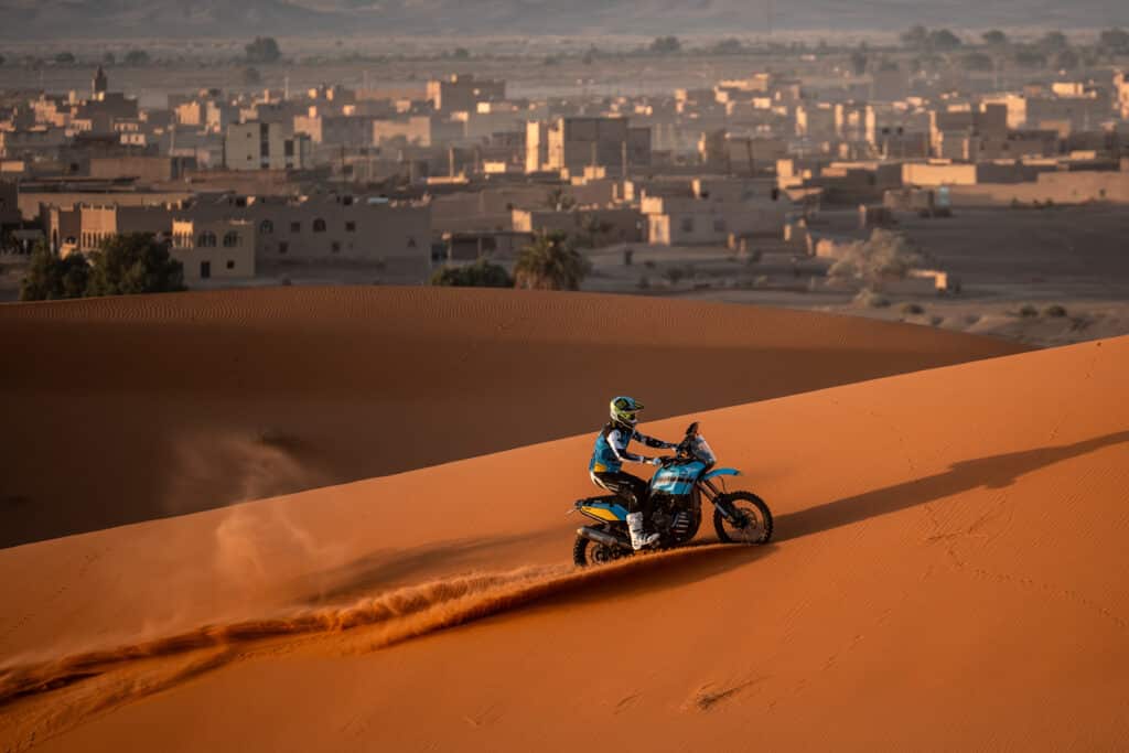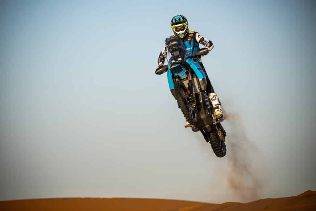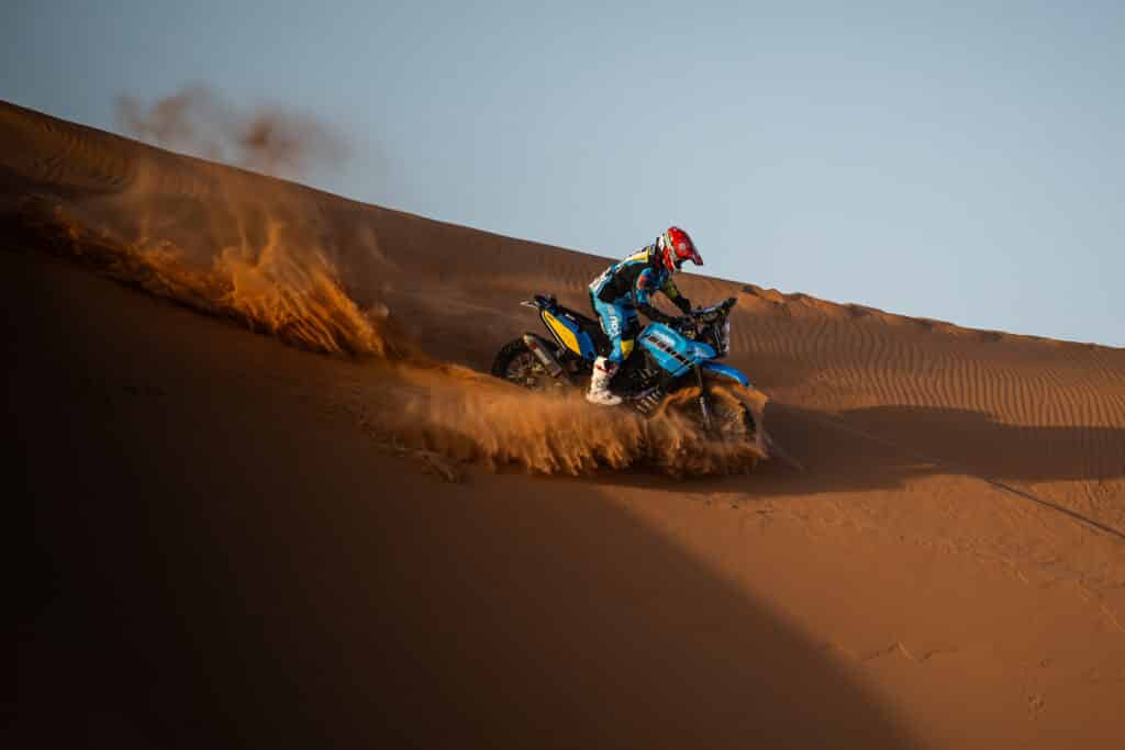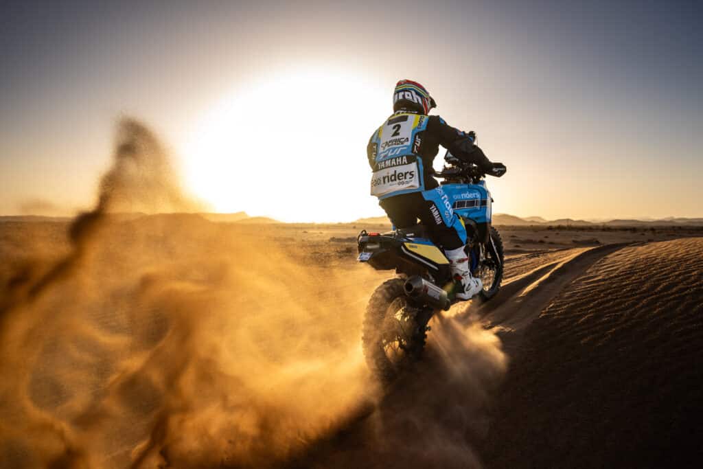 „Ehrlich gesagt war der Start super. Das ist mein erstes Eco Race in Afrika auf dem Motorrad, und ich bin noch dabei, Rallye-Raid zu lernen. Daher war der sechste Platz, nur sieben Minuten hinter Alessandro, ein solider Auftakt. Die Navigation auf dieser Etappe war knifflig, da aufgrund des Wetters viele Änderungen am Roadbook vorgenommen werden mussten. Da ich die Navigationsfähigkeiten auf diesem Niveau noch lerne, musste ich mich mehr darauf konzentrieren als auf Geschwindigkeit, was etwas frustrierend war. Hoffentlich gibt es auf der nächsten Etappe nicht so viele Änderungen, und ich kann offensiver angreifen. Das Motorrad war super, es war fantastisch, durch die Dünen zu surfen, und ich freue mich auf die nächste Etappe.“