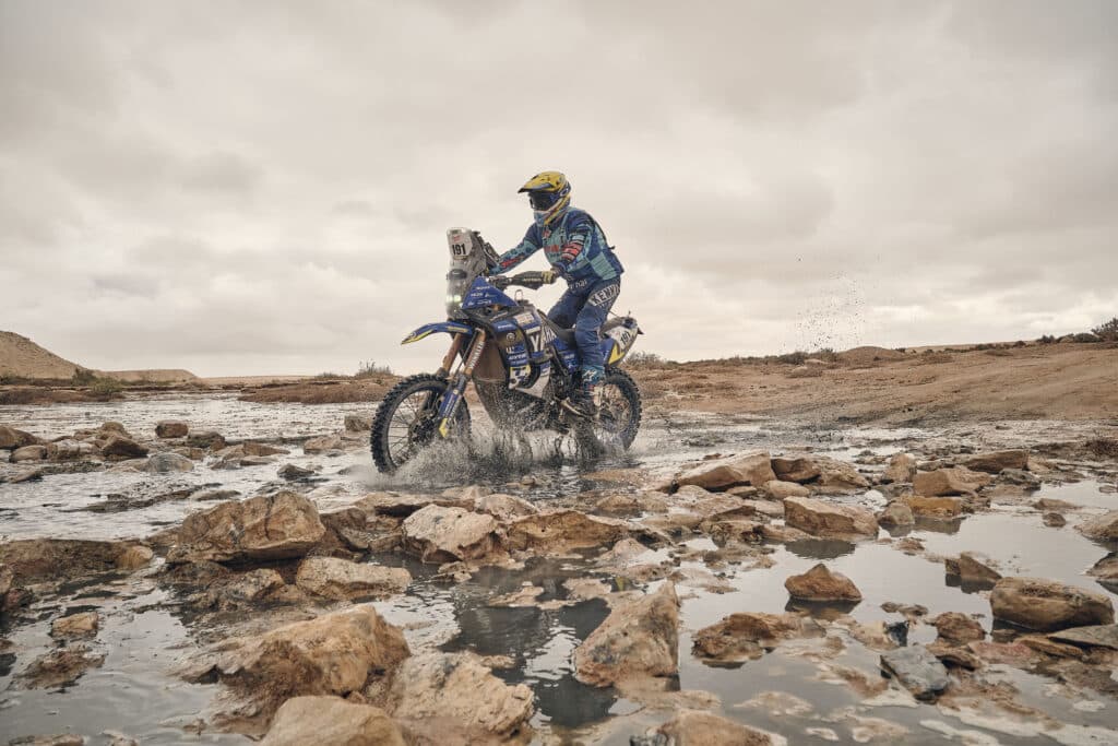 „Heute war ein harter Tag. Ich fühlte mich auf der Ténéré super und hatte einen schönen Vorsprung herausgefahren, als ich leider nur 12 km vor dem Ziel der Wertungsprüfung ein kleines Elektrikproblem am Motorrad hatte, das mich zum Anhalten zwang. Ich konnte es nicht mehr starten und saß fest. Zum Glück kam Nicolas und rettete mir den Tag. Er schleppte und schob mich bis ins Ziel, sodass ich die Rallye fortsetzen konnte. Ich möchte mich bei Nicolas bedanken; das war eine großartige Geste der Fairness, da er viel Zeit geopfert hat, um mir zu helfen. Dafür bin ich ihm sehr dankbar. Es ist schön zu sehen, dass der Rallye-Geist noch immer so lebendig ist. Jetzt liege ich über eine Stunde hinter den Führenden in der Gesamtwertung, aber es ist noch ein langer Weg. Deshalb werde ich kämpfen und versuchen, in den nächsten Wertungsprüfungen Zeit gutzumachen. Dann sehen wir weiter.“