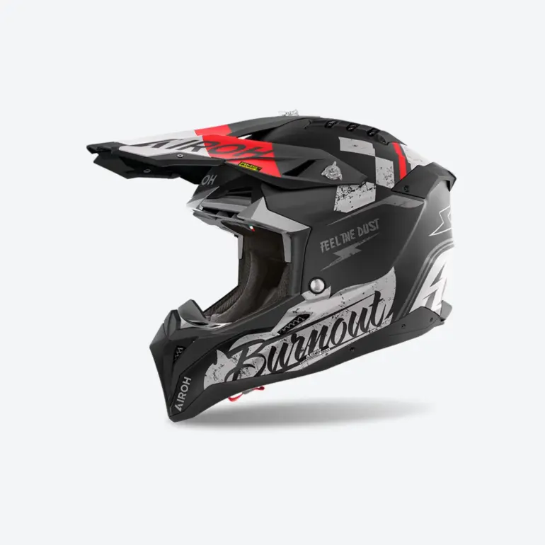 Der Aviator 3 Burnout setzt neue Standards für Offroad-Helme und kombiniert auffällige Grafiken mit solider Technik. Der Helm wurde im Windkanal entwickelt und von Weltmeistern getestet. Er richtet sich an Fahrer, die bei hohen Geschwindigkeiten und wechselnden Bedingungen auf Aerodynamik und Temperaturregulierung achten. Das Belüftungssystem umfasst Spoiler mit integrierten Absaugern und acht Lufteinlässe, die für Stabilität und bessere Luftzirkulation sorgen. Die Außenschale gibt es in vier Größen aus HPC-Kohle, wobei die Carbon-Version (Carbon 3K) nur für bestimmte Grafiken verfügbar ist. Die Schalenaufteilung (XS–S, M, L, XL–XXL) ermöglicht eine passgenaue Form für Größen von XS bis XXL. Mit ECE 22.06-Zulassung eignet er sich für den Straßeneinsatz, und das Gewicht von 1330 g ± 50 g balanciert Stabilität und Tragekomfort. Die Verschluss erfolgt über einen DD-Ring.