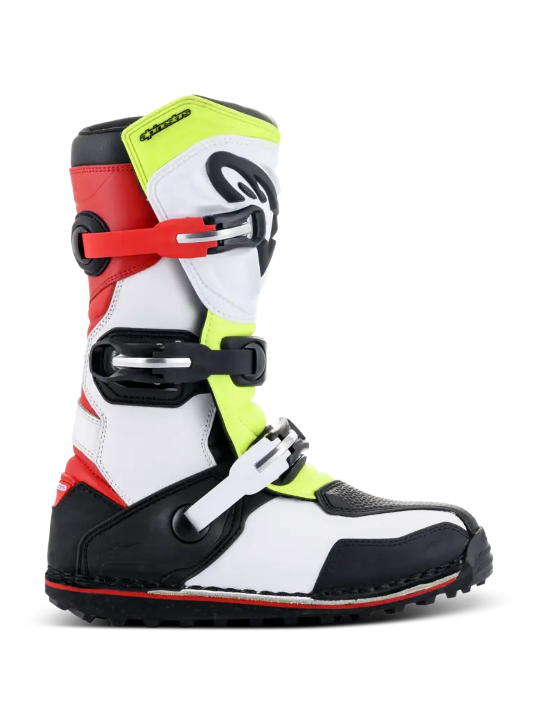 Die Tech-T Stiefel gibt es in Weiß, Rot, Gelb Fluo und Schwarz, in Größen von EU 38 bis 48. Sie positionieren sich als technischer Offroad-Stiefel. Ergänzende Artikel wie Socken oder andere Ausrüstung können den Look abrunden, und Empfehlungen für Helme, Protektoren und Jacken passen dazu.