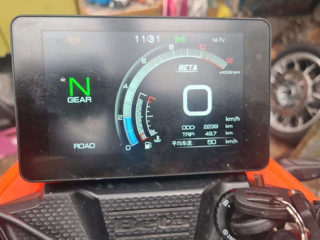 Unser italienischer Untersatz mit dem Motor von Zontes (einem asiatischen Kooperationspartner von Beta) bietet wie üblich ein leicht und geräuschlos zu bedienendes 6-Gang-Getriebe.