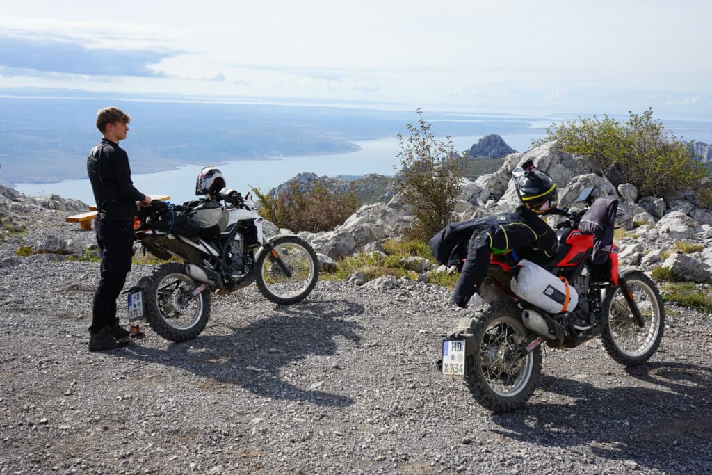Ben und ich sind die beiden ACT (Adventure Country Tracks) Kroatien und Italien mit identischen Beta Alps 4.0 gefahren. Wer die jeweiligen Strecken kennt oder sich die zahlreichen unterhaltsamen Videos in Youtube oder anderen Social Media Seiten angeschaut hat, weiß das entsprechende Anforderungsprofil einzuschätzen. Diese Tracks sind natürlich auch für große Reiseenduros befahrbar. Teilweise werden für besonders haarige Streckenabschnitte auch mildere Alternativstrecken vorgeschlagen. Die Befahrbarkeit hängt aber in allererster Linie von Witterungseinflüssen ab und im Vergleich zu meinen zurückliegenden Fahrten mit der 1200GS machen es einem die mehr als 100kg Mindergewicht wesentlich einfacher.