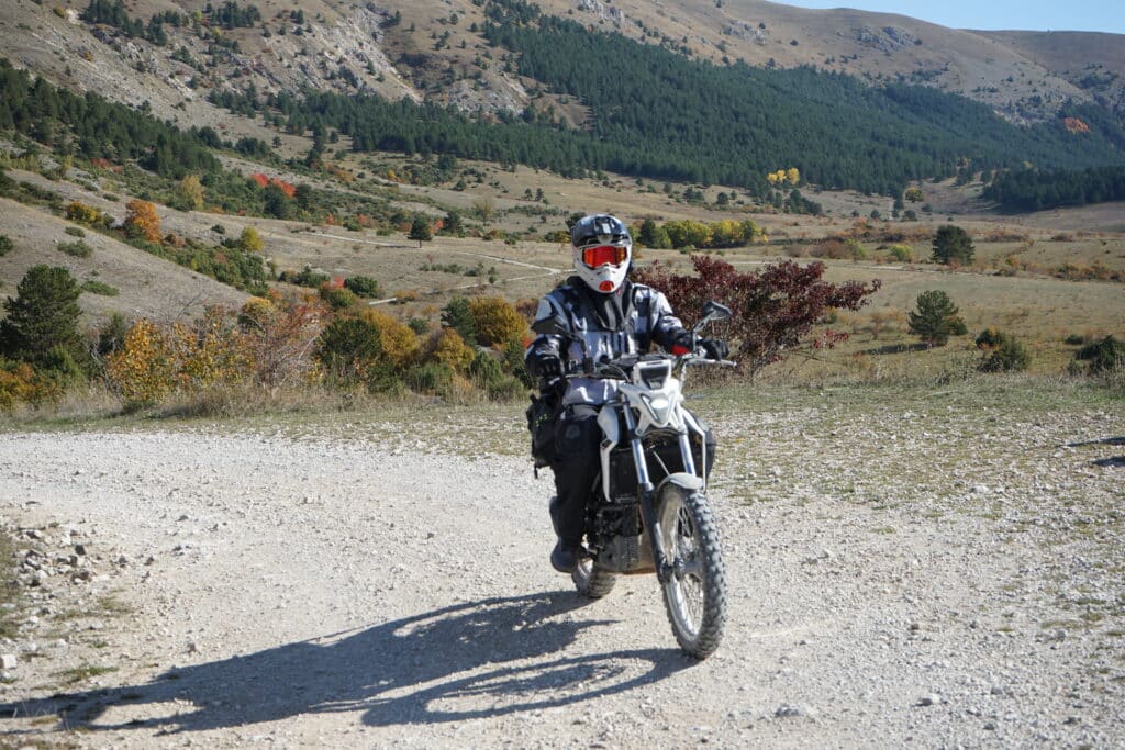 Die Beta Alp 4.0 bietet eine Höchstgeschwindigkeit von deutlich über 100km/h. Spaß macht sie aber eher bis 100km/h. In Italien sind wir beide von Endpunkt des ACT in Vallevo östlich der Abruzzen bis zum Startpunkt in Bertinoro aufgrund der Regensituation und der Vorhersage der kommenden Tage tatsächlich 300KM Autobahn gefahren. Für mich ist Autobahn und Motorradfahren eigentlich ein No-Go und immer nur der Situation geschuldet. Aber auch das geht.