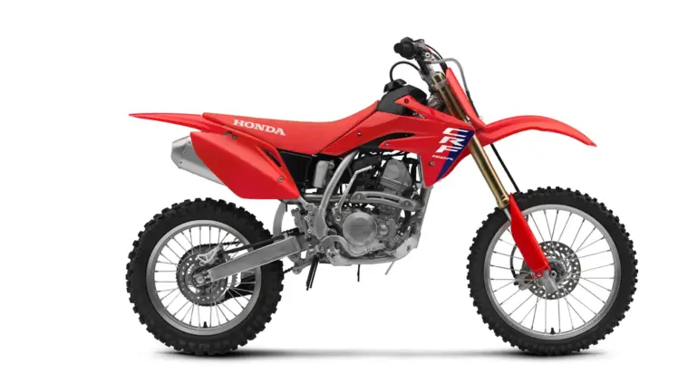 Bei den Rädern setzt Honda auf ein bewährtes MX-Format mit 19-Zoll-Vorderrad und 16-Zoll-Hinterrad. In Verbindung mit den 15-mm- (vorn) und 17-mm-Achsen (hinten) ergibt sich ein guter Kompromiss aus Stabilität, Haltbarkeit und geringem ungefederter Masse. Weniger Gewicht an den rotierenden Teilen verbessert das Ansprechverhalten des Fahrwerks und hilft, die Maschine leichter in die Kurve zu kippen. Für den Einsatz im Jugend-Motocross oder leichten Enduro-Sport ist diese Radkombination ein praxisgerechter Kompromiss, der genügend Stabilität für harte Landungen bietet, ohne die Handlichkeit zu opfern.