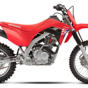 Am Heck sorgt ein abgestimmtes Showa-Monofederbein für gleichmäßige Dämpfung über den gesamten Weg. Es ist über eine 11 Prozent steifere Pro-Link-Umlenkung verbunden, was mehr Kontrolle beim Beschleunigen aus Löchern und bei harten Landungen bietet. Mit 310 mm Federweg vorn und hinten sowie 333 mm Bodenfreiheit ist die Maschine für harten Offroad-Einsatz ausgelegt.