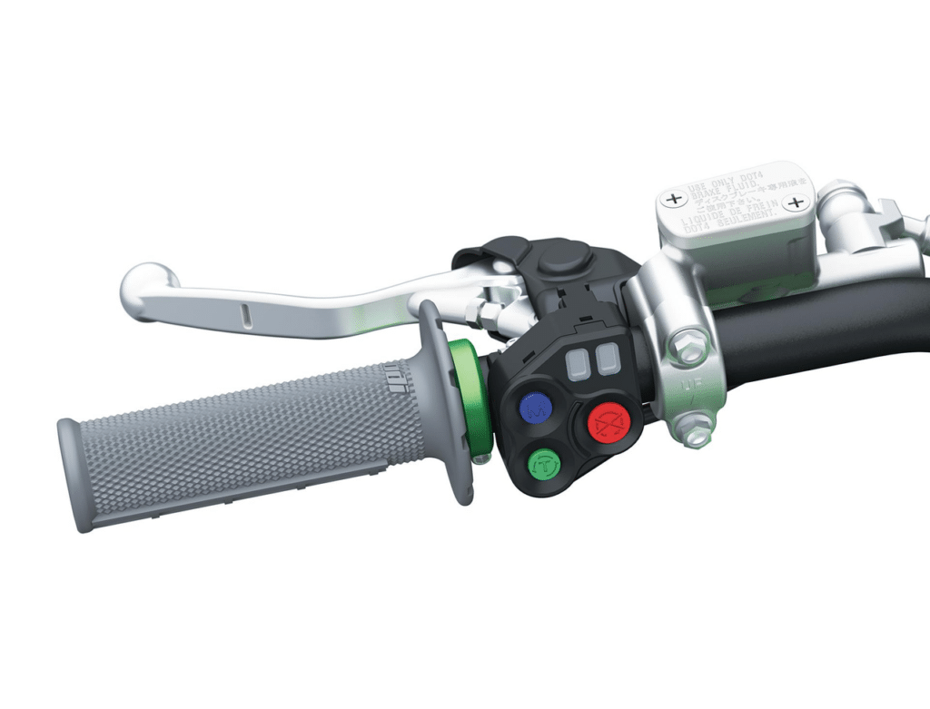 Die KX250 2026 integriert Elektronik wie Kawasaki TRaction Control (KTRC) mit zwei Stufen und Deaktivierungsoption. Die schwache Stufe stabilisiert subtil auf wechselndem Grip, die starke Stufe eignet sich für rutschige Bedingungen.