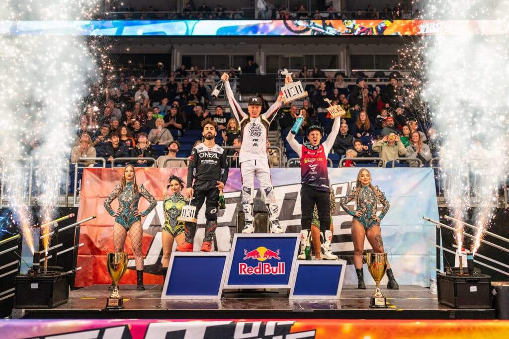 NIGHT of the JUMPs, die spektakulärste Freestyle-MX-Sportserie der Welt, feierte am Samstag, dem 7. Februar 2026, den Saisonauftakt in Berlin. Für Adrenalin ohne Ende und pure Action sorgten acht der weltbesten Freestyle-Motocross-Sportler sowie MTB-/BMX-/Scooter-Athleten. Den Auftakt-Grand Prix der World Tour Championship in der Uber Arena gewann der Australier Pat Bowden und lässt damit schon jetzt Hochspannung für die nächste Runde der Tour am 25. April in München aufkommen.