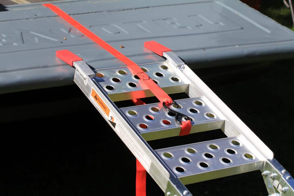 In der Praxis verhindert ein solcher Gurt, dass die Rampe beim Auffahren verrutscht oder gar wegrutscht, wenn das Motorradgewicht auf sie einwirkt. Besonders kritisch wird es, wenn das Hinterrad auf der Rampe steht und der Schwerpunkt weit oben liegt. Ein sicheres Gefühl in diesem Moment ist unbezahlbar.