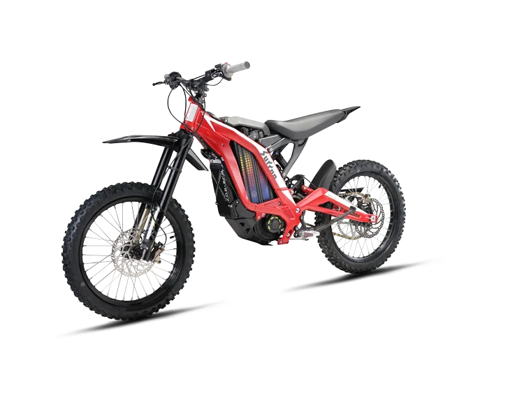Mit Abmessungen von 186 cm Länge, 78 cm Breite und 102 cm Höhe ist die Sur-Ron Light Bee S kompakter als ein klassischer Crosser für Erwachsene. Der Radstand von 125 cm sorgt für Stabilität, ohne die Wendigkeit zu opfern. Die Bodenfreiheit von 22 cm reicht für Wurzeln, Kuppen und kleinere Steine auf typischen Jugend- und Hobby-Strecken.