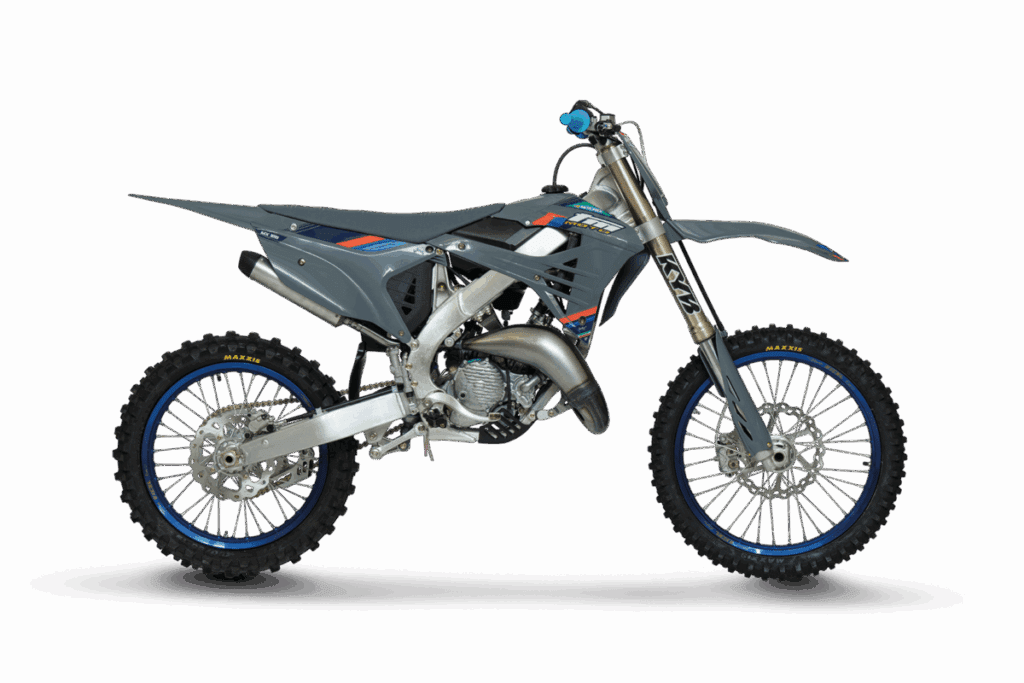 Der 124,8‑cm³‑Motor ist wahlweise mit Keihin‑Vergaser (ES 2T) oder als Einspritzversion (ES FI 2T) erhältlich. Abgasklappe (E.C.V.S.) und eMoticom‑Steuerung gehören zur Serienausstattung. Das spricht Fahrer an, die einen leichten, drehfreudigen Crosser mit klarer Rückmeldung suchen. Die Version mit Keihin‑Vergaser passt zum puristischen Charakter.
