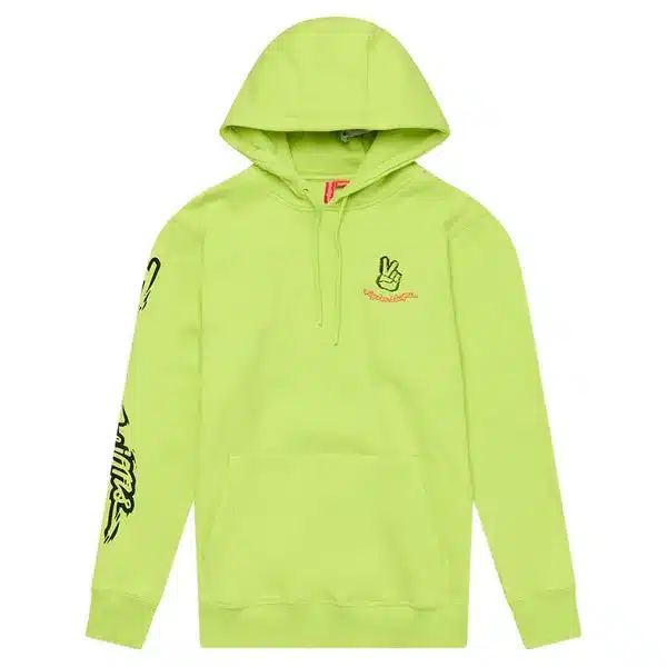 Das hervorstechendste Merkmal ist die Glo-Yellow-Farbgebung: In Verbindung mit einem sachlichen Schnitt entsteht eine Kombination aus Alltagstauglichkeit und klarer Präsenz. Für Motorradfahrer bedeutet das einen doppelten Nutzen – einerseits verbessert die Signalfarbe die Wahrnehmung im Straßenbild, andererseits bleibt der Hoodie ein modisches Statement für Pausen, Treffen oder Stadtfahrten. Die verfügbare Größenpalette reicht von S bis XXL, sodass unterschiedliche Körperformen bedacht sind. Allerdings sind derzeit alle Größen in der Glo-Yellow-Variante als ausverkauft markiert; Interessenten können sich für eine Benachrichtigung per E-Mail vormerken lassen. Das grafische Peace-Out-Motiv gibt dem Pulli seinen Charakter: dezent genug, um unter einer Motorradjacke nicht zu stören, und präsent genug, um abseits des Bikes als Statement zu funktionieren.